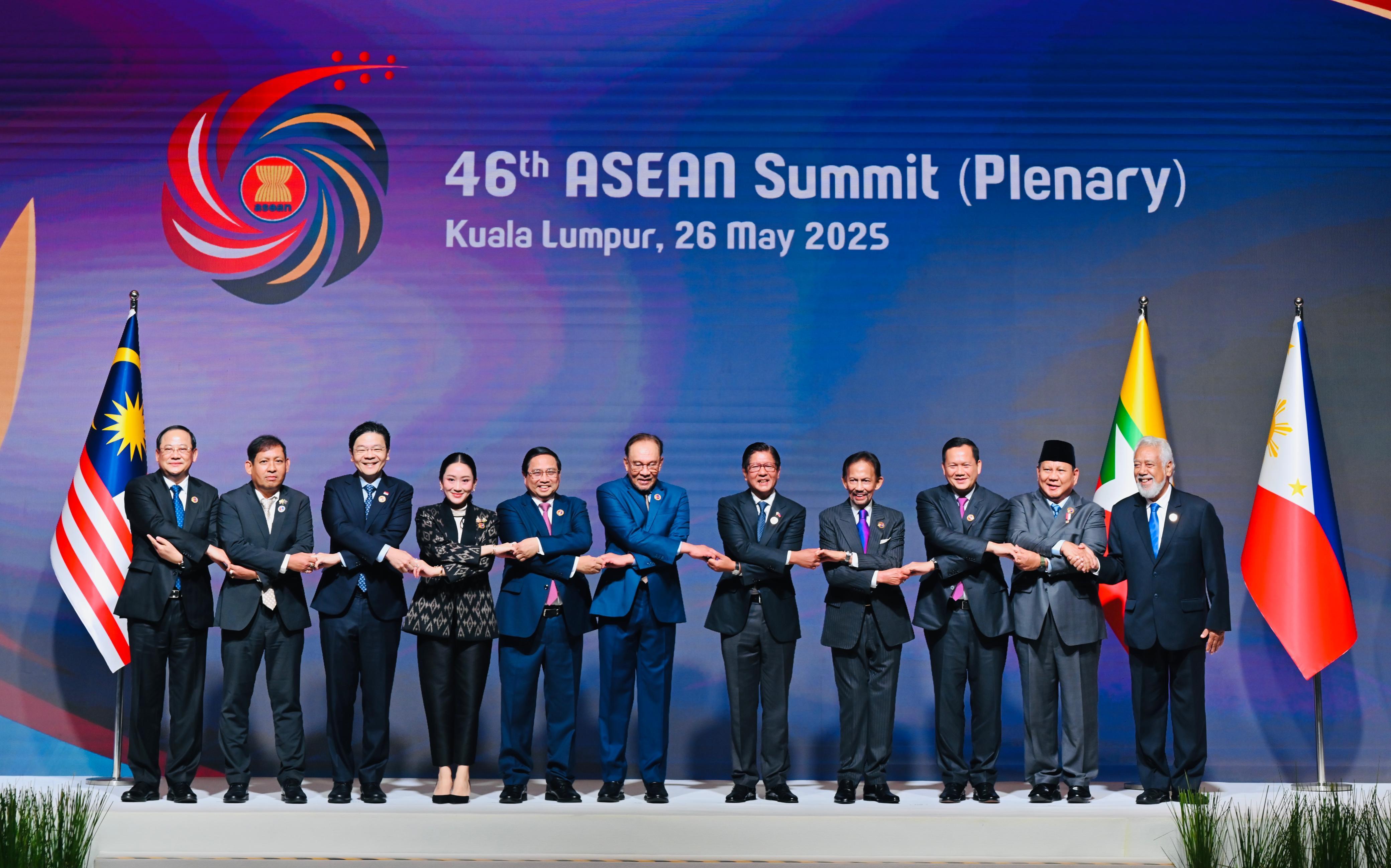 Presiden Republik Indonesia, Prabowo Subianto mengikuti sesi pleno Konferensi Tingkat Tinggi (KTT) ke-46 ASEAN yang secara resmi dibuka oleh Perdana Menteri (PM) Malaysia, Anwar Ibrahim selaku Ketua ASEAN tahun 2025. Sesi Pleno ini berlangsung di Ruang Konferensi, Kuala Lumpur Convention Centre (KLCC), Kuala Lumpur, Malaysia, pada Senin, 26 Mei 2025.