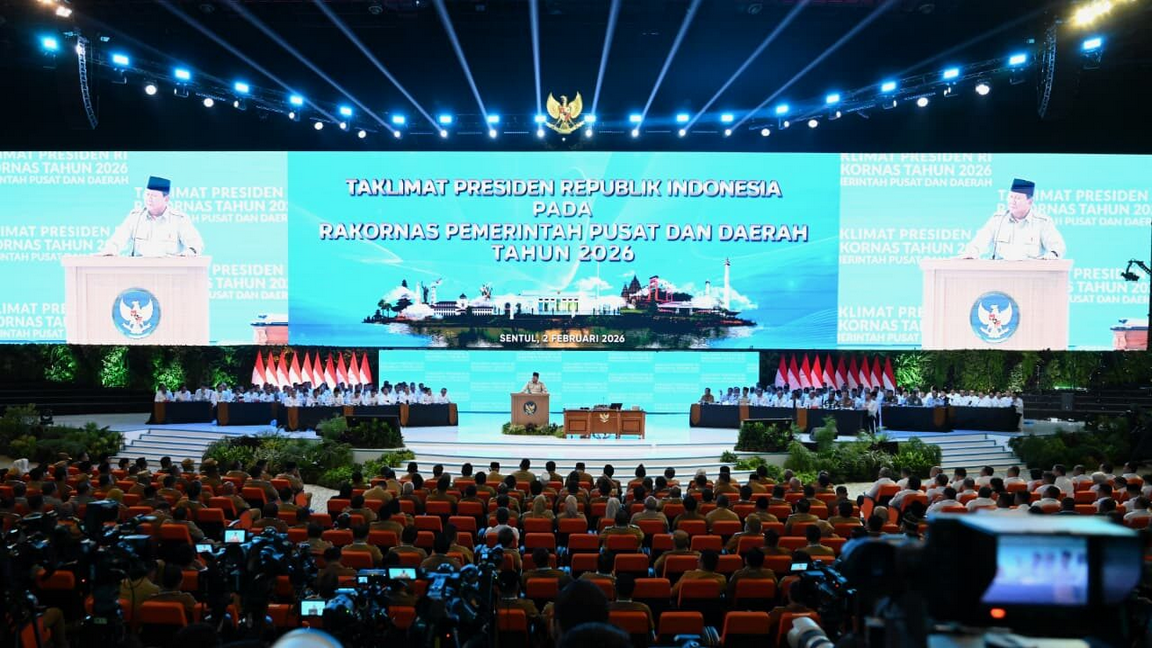 Presiden Prabowo Subianto secara resmi membuka Rapat Koordinasi Nasional (Rakornas) Pemerintah Pusat dan Daerah Tahun 2026 yang digelar di Sentul International Convention Center (SICC), Kabupaten Bogor, Provinsi Jawa Barat, pada Senin, 2 Februari 2026. Kehadiran Presiden pada rakornas ini menegaskan komitmen pemerintah dalam memperkuat sinergi antara pemerintah pusat dan daerah guna memastikan kesinambungan arah pembangunan nasional.