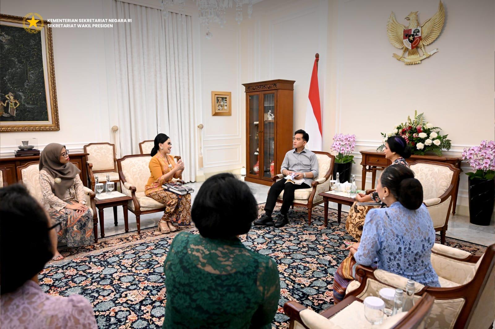 Wakil Presiden (Wapres) Gibran Rakabuming menerima audiensi Komunitas Kebaya Menari di Istana Wakil Presiden, Jakarta, Jumat (03/10/2025). Dalam pertemuan tersebut, Wapres menyampaikan dukungannya terhadap peran komunitas ini dalam melestarikan kebaya sekaligus menjadikannya bagian dari diplomasi budaya Indonesia di kancah internasional.