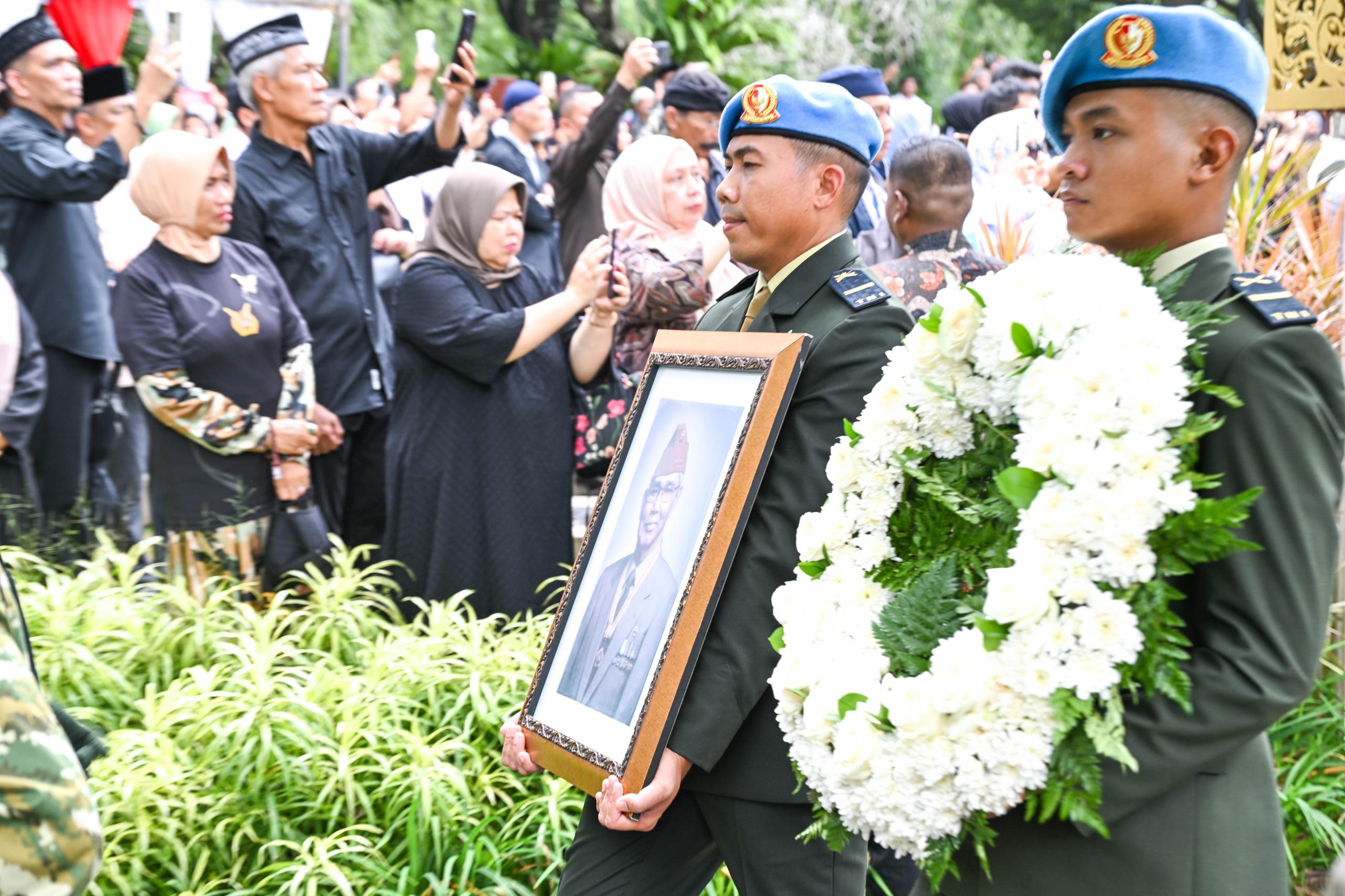 Upacara pemakaman dilaksanakan secara militer dengan penuh khidmat sebagai bentuk penghormatan dan penghargaan negara atas jasa, pengabdian, serta dedikasi almarhum kepada bangsa dan negara. Bertindak sebagai Inspektur Upacara, Presiden Prabowo Subianto memimpin langsung jalannya prosesi pemakaman.