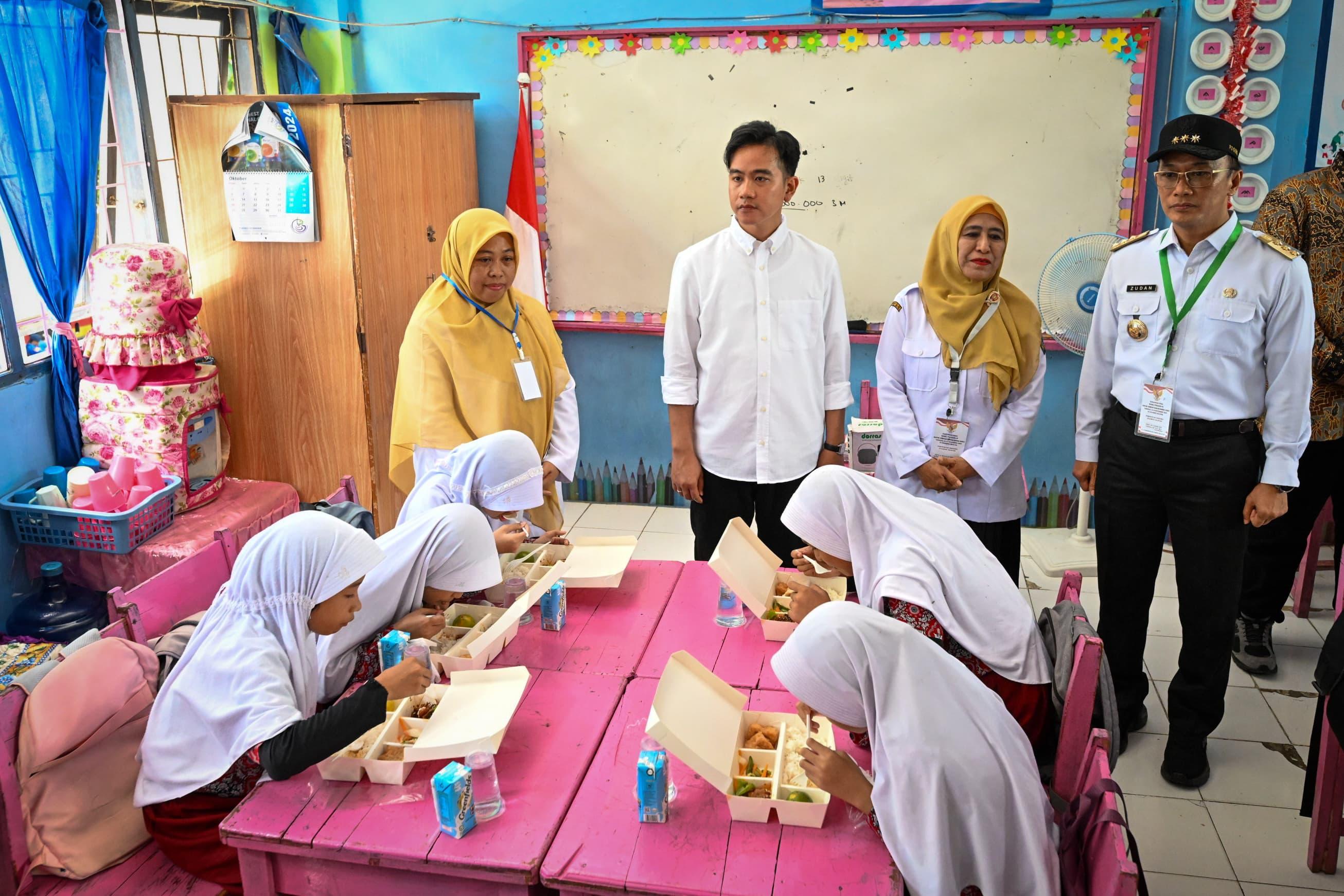 Wapres Gibran Rakabuming pemantauan di sejumlah sekolah baik di Pulau Jawa maupun di luar Pulau Jawa, salah satunya di SDN 103 Inpres Hasanuddin, Makassar, pada Rabu, 13 November 2024. Wapres berharap agar program Makan Siang Bergizi tidak hanya memberikan manfaat bagi para pelajar, namun juga dapat menggerakkan ekonomi daerah dengan melibatkan petani dan UMKM lokal untuk memasok kebutuhan pengadaan makanan.