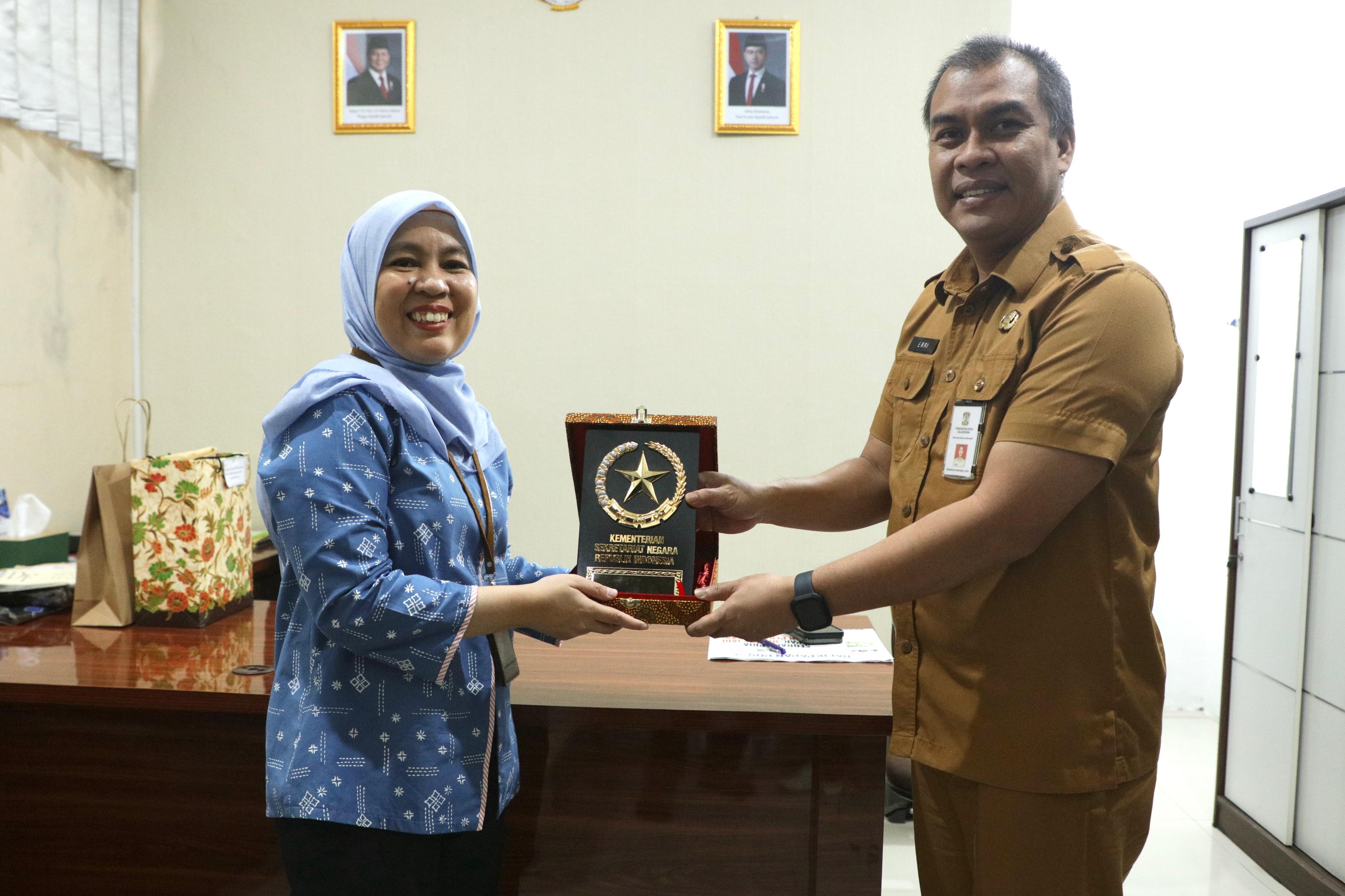 Turut hadir dalam pertemuan, antara lain, Kepala Bagian Dukungan Administrasi, Biro Humas Kemensetneg, Wenny Wenny Aulia Vidyaningtyas dan Sekretaris Diskominfo Balikpapan, Agung Budi Wibowo. (AMY - UN/Humas Kemensetneg)
