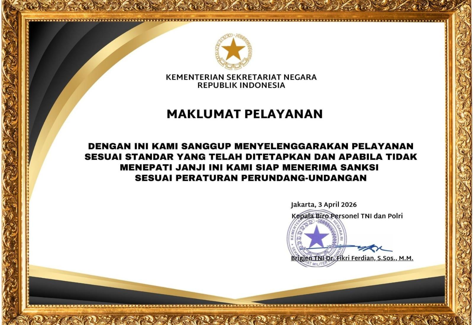 Maklumat Pelayanan Biro Personel TNI dan Polri (BPTP)