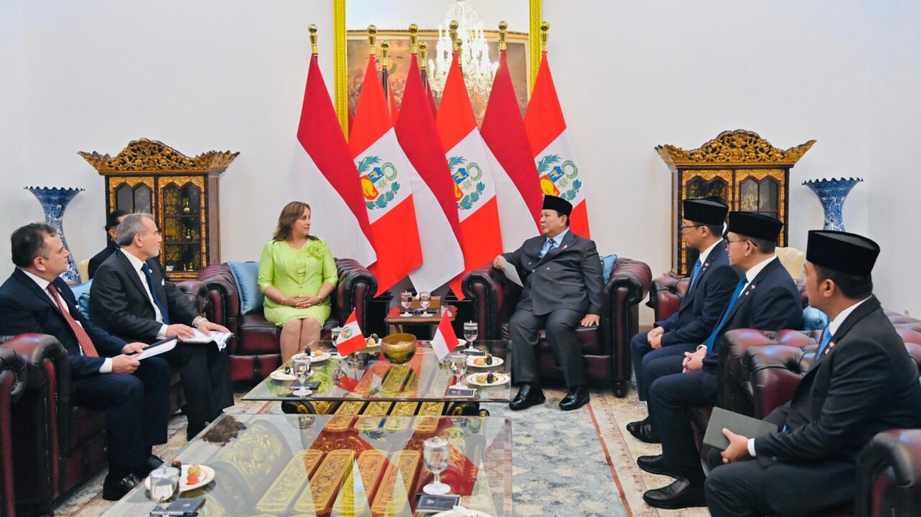 Presiden Republik Indonesia, Prabowo Subianto, menyampaikan apresiasi dan sambutan hangat kepada Presiden Republik Peru, Dina Ercilia Boluarte Zegarra, dalam pertemuan tête-à-tête di ruang kerja Istana Merdeka, Jakarta, Senin, 11 Agustus 2025. Pertemuan ini menjadi salah satu agenda penting dalam rangkaian kunjungan kenegaraan Presiden Dina Boluarte.