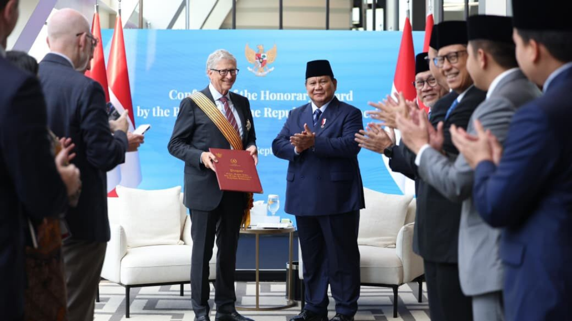 Presiden Republik Indonesia Prabowo Subianto mengadakan pertemuan dengan tokoh filantropi dunia sekaligus pendiri Gates Foundation, Bill Gates, di Landmark Room, Lantai 29, Hotel Millennium Hilton New York One UN Plaza, pada Selasa (23/09/2025). Dalam pertemuan yang berlangsung di sela rangkaian Sidang Majelis Umum ke-80 Perserikatan Bangsa-Bangsa (PBB) tersebut, Presiden Prabowo tidak hanya membahas peluang kerja sama di berbagai bidang, namun juga menganugerahkan tanda kehormatan kepada Bill Gates atas jasa dan dedikasinya yang luar biasa bagi kesejahteraan umat manusia.