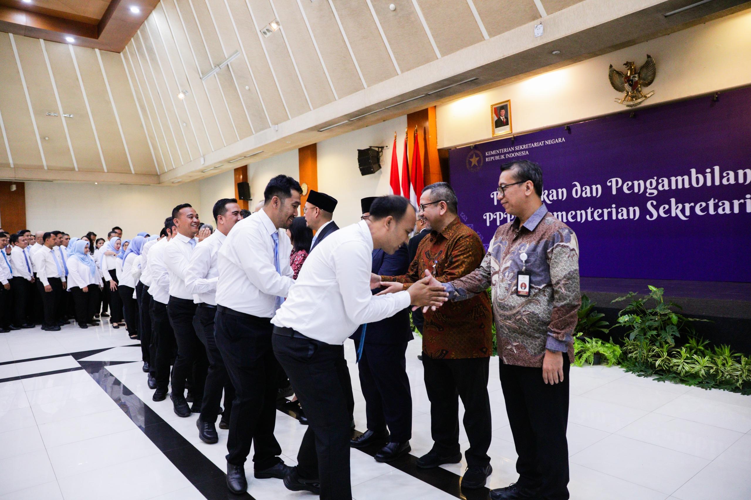 "Saya harapkan Saudara dapat bekerja lebih baik, rajin, disiplin, profesional, dan selalu menjaga integritas Saudara sebagai PPPK Kemensetneg," ujar Sesmensetneg,